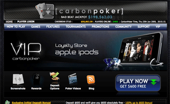 Carbon poker is new on the market and they have strived to be one of the top poker rooms around. They are offering great promotions and solid software. The software is very quick and reliable, which features crisp graphics that won't slow down older machines. They have all the functions most players are looking for including offering up to 8 table play. Carbon Poker also offers the "rabbit hunt", which lets you see the river card if everyone folds on the turn. They also have great sign up bonuses with $500 at 200%.